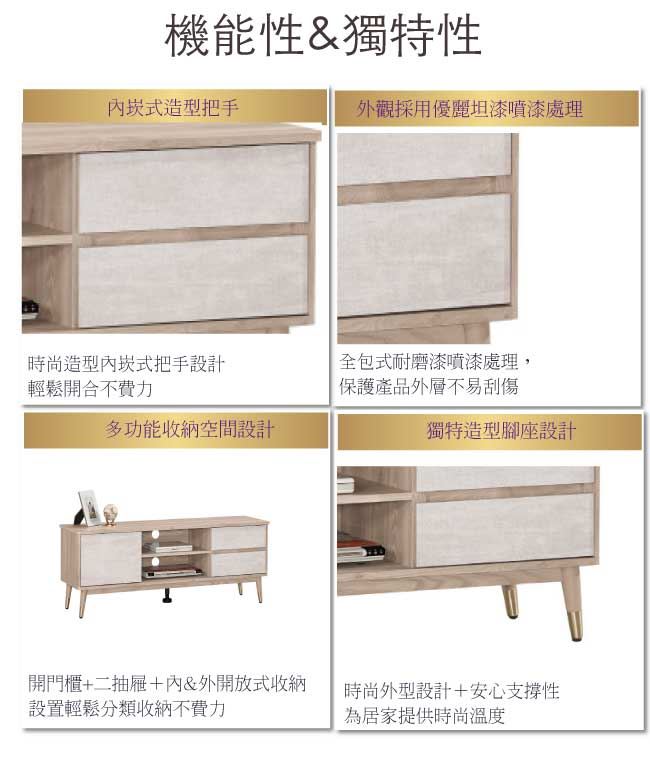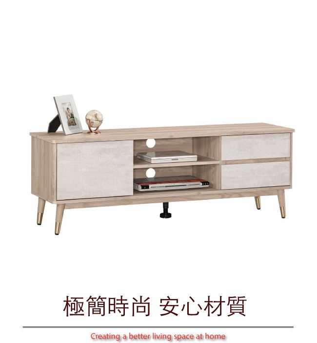 商品介紹 | 【綠家居】喬普 雙色5尺單門二抽電視櫃/視聽櫃 木紋雙色系+現代簡約風格+安心材質製造,整體採用防蛀木心板+五金滑軌結構+防潮實木&銀漆五金腳套腳座+防夾手緩衝門片五金等安心材質製造,外層採用優利坦全包式耐磨噴漆處理搭配開門櫃+二抽屜+內&外開放式收納等收納設計,全由專人配送到家,專業安心服務,替你省下更多時間! 【商品特色】 木紋雙色系+現代簡約風格+安心材質製造,使用放心+搭配居家更便利 採用防蛀木心板+五金滑軌結構+防潮實木&銀漆五金腳套腳座+防夾手緩衝門片五金等安心材質製造 開門櫃+二抽屜+內&外開放式收納等收納設計 此商品不需要DIY組立,此商品為組立後之成品 品質保證、專業設計、貼心服務 全由專人配送到家,專業安心服務,替您省下更多時間 |