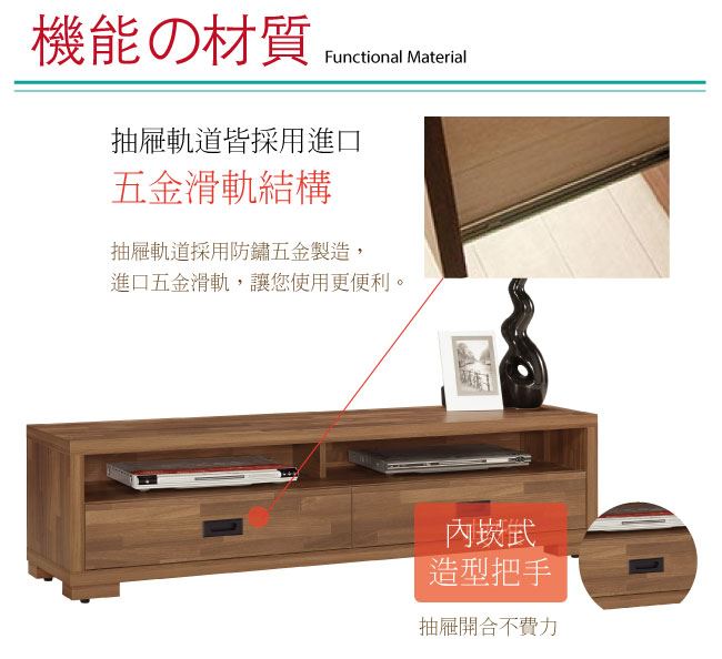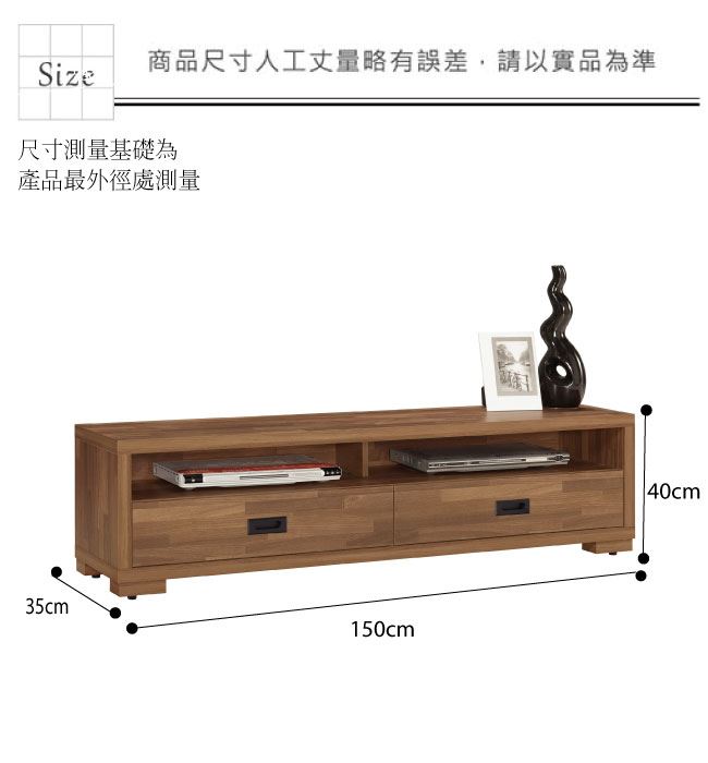 材質 | ◆產品名稱: 【綠家居】山普森 時尚5尺二抽電視櫃/視聽櫃(二色可選) 產品尺寸: 尺寸:(寬)150x(深)35x(高)40公分 ◆材質: 材質:防蛀木心板+防潮耐磨腳座 材質:五金滑軌結構 塗漆:優利坦全包式耐磨噴漆處理