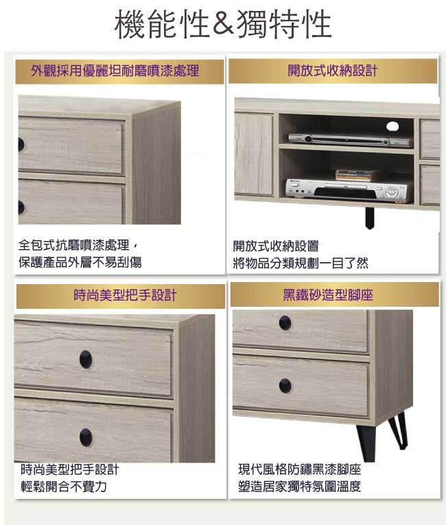 商品介紹 | 【綠家居】湯姆 時尚5.8尺二門二抽電視櫃 淺橡木紋色系+現代簡約風格+安心材質製造,整體採用防蛀木心板+黑鐵砂腳座+五金滑軌結構+防夾手緩衝門片五金等安心材質製造,產品外層採用防潮耐磨噴漆處理搭配開門櫃+二抽屜+開放式層格等收納空間設計,全由專人配送到家,專業安心服務,替你省下更多時間! 【商品特色】 淺橡木紋色系+現代簡約風格+安心材質製造,使用放心+搭配居家更便利 採用防蛀木心板+黑鐵砂腳座+五金滑軌結構+防夾手緩衝門片五金等安心材質製造 產品外層採用防潮耐磨噴漆處理 搭配開門櫃+二抽屜+開放式層格等收納空間設計 此商品不需要DIY組立,此商品為組立後之成品 品質保證、專業設計、貼心服務 全由專人配送到家,專業安心服務,替您省下更多時間 |
