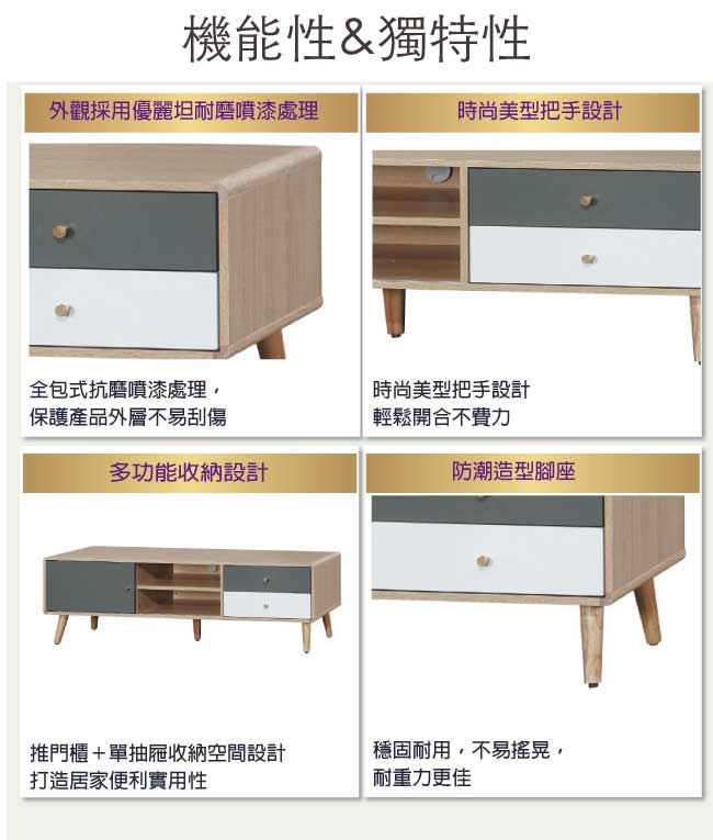商 品 介 紹 | 【綠家居】瑞克夏5尺單門二抽電視櫃/視聽櫃 木紋雙色系+現代簡約風格+安心材質製造,整體採用防蛀木心板+防潮MDF板材+防潮木紋腳座+五金滑軌結構等安心材質製造,產品外層採用防潮耐磨&亮面噴漆處理搭配採用開門櫃+二抽屜+開放式層格等空間設計,全由專人配送到家,專業安心服務,替你省下更多時間! 【商品特色】 木紋雙色系+現代簡約風格+安心材質製造,使用放心+搭配居家更便利 採用防蛀木心板+防潮MDF板材+防潮木紋腳座+五金滑軌結構等安心材質製造 產品外層採用防潮耐磨&亮面噴漆處理 搭配採用開門櫃+二抽屜+開放式層格等空間設計 此商品不需要DIY組立,此商品為組立後之成品 全由專人配送到家,專業安心服務,替您省下更多時間 |