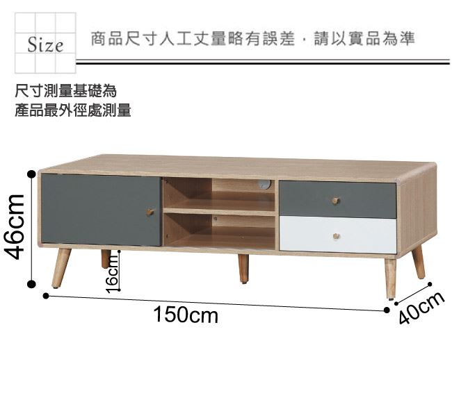尺寸:(寬)150x(深)40(高)46公分 ◆材質: 材質:防蛀木心板+防潮MDF板材+防潮木紋腳座+五金滑軌結構 噴漆:防潮耐磨&亮面噴漆處理