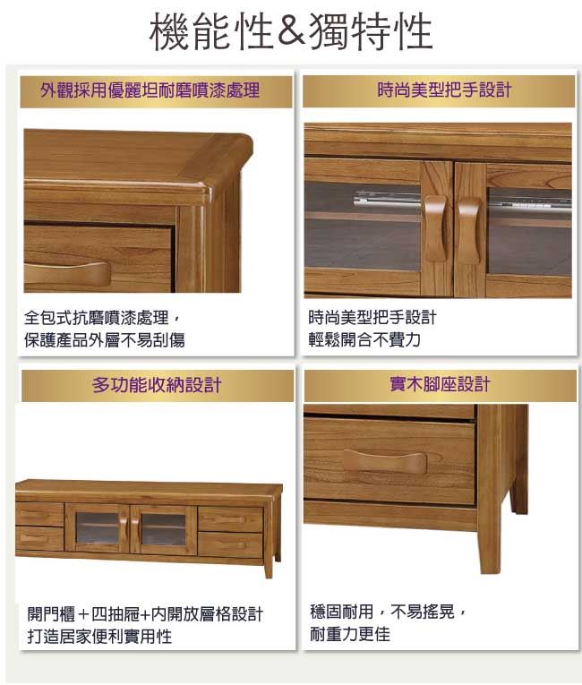 - ◆產品名稱:【綠家居】安斯5尺二門四抽實木電視櫃/視聽櫃