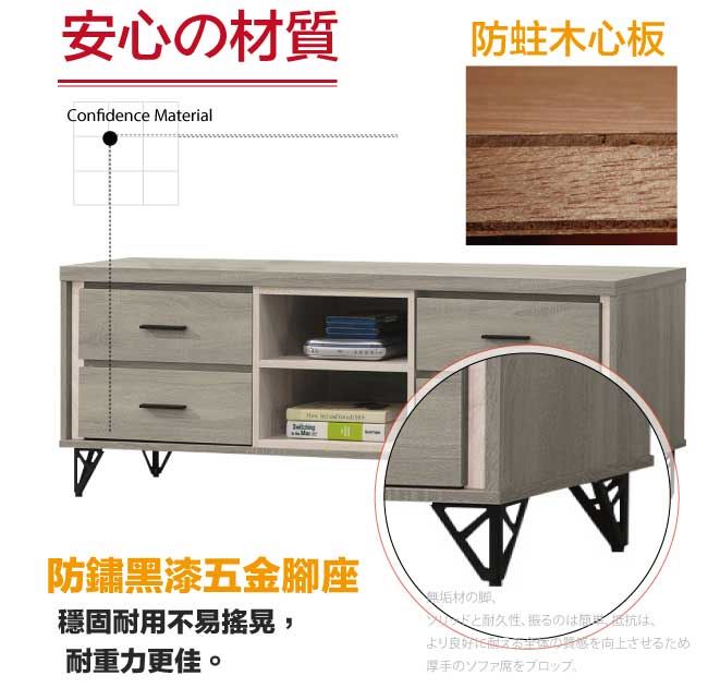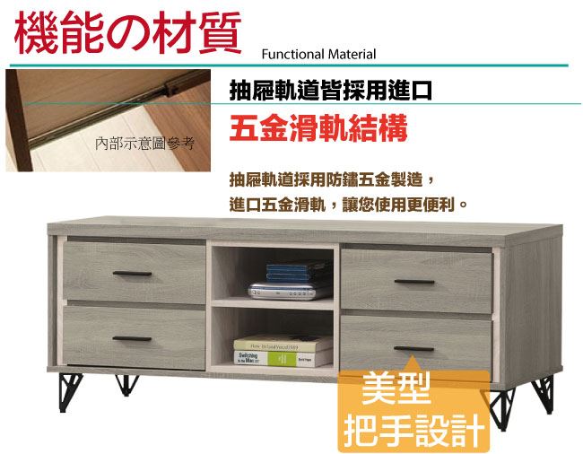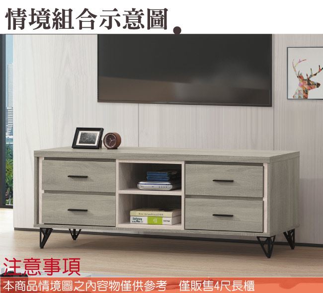 材質 | ◆產品名稱:【綠家居】史莉4尺四抽電視櫃/視聽櫃 尺寸:(寬)120x(深)40(高)57公分 ◆材質: 材質:防蛀木心板+防鏽黑漆五金腳座+五金滑軌結構 噴漆:防潮耐磨噴漆處理