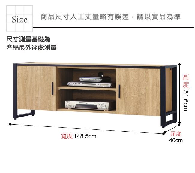 商 品 介 紹 | 【綠家居】甜蜜5尺二門電視櫃/視聽櫃(二色可選) 二色可選+現代簡約風格+安心材質製造,整體採用防蛀木心板+防鏽黑漆五金邊框腳座等安心材質製造,產品外層採用防潮耐磨噴漆處理搭配採用開門櫃+開放式收納等收納空間設計,全由專人配送到家,專業安心服務,替你省下更多時間! 【商品特色】 二色可選+現代簡約風格+安心材質製造,使用放心+搭配居家更便利 採用防蛀木心板+防鏽黑漆五金邊框腳座等安心材質製造 產品外層採用防潮耐磨噴漆處理 搭配採用開門櫃+開放式收納等收納空間設計 此商品不需要DIY組立,此商品為組立後之成品 品質保證、專業設計、貼心服務 全由專人配送到家,專業安心服務,替您省下更多時間
