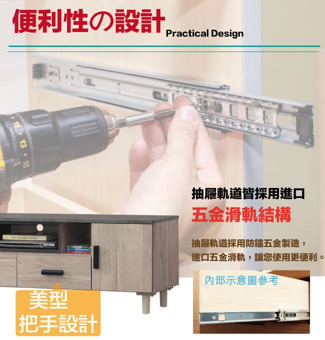 木紋雙色系+五金滑軌結構