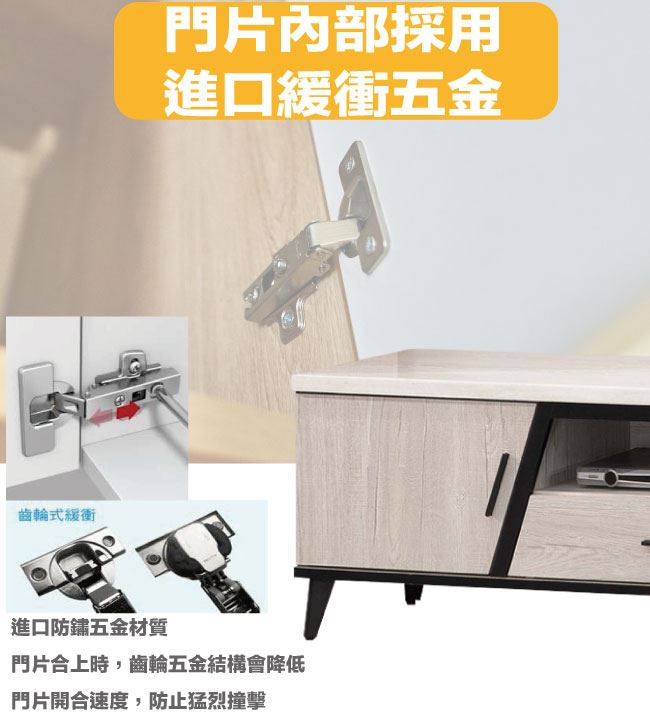 五金滑軌結構+防夾手緩衝五金