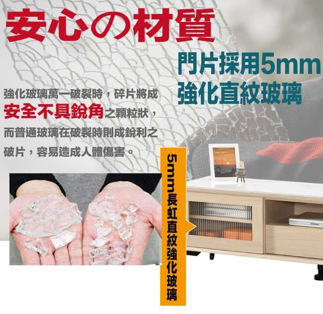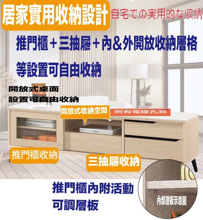 商 品 介 紹 | 【綠家居】蘭達5尺推門岩板三抽電視櫃 橡木紋色系+現代簡約風格+安心材質製造,整體採用防蛀木心板+烤漆金屬腳座+五金滑軌結構+5mm直紋強化玻璃+12mm高硬度岩板等安心材質製造,產品外層採用防潮耐磨噴漆處理搭配採用推門櫃+三抽屜+內&外開放層格等收納空間設計,全由專人配送到家,專業安心服務,替你省下更多時間! 【商品特色】 橡木紋色系+現代簡約風格+安心材質製造,使用放心+搭配居家更便利 採用防蛀木心板+烤漆金屬腳座+五金滑軌結構+5mm直紋強化玻璃+12mm高硬度岩板等安心材質製造 搭配採用推門櫃+三抽屜+內&外開放層格等收納空間設計 此商品不需要DIY組立,此商品為組立後之成品 品質保證、專業設計、貼心服務 全由專人配送到家,專業安心服務,替您省下更多時間
