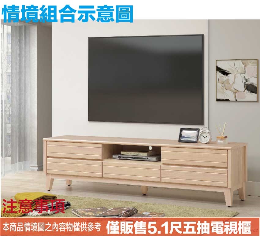- ◆產品名稱:【綠家居】瑞歐5.1尺五抽電視櫃