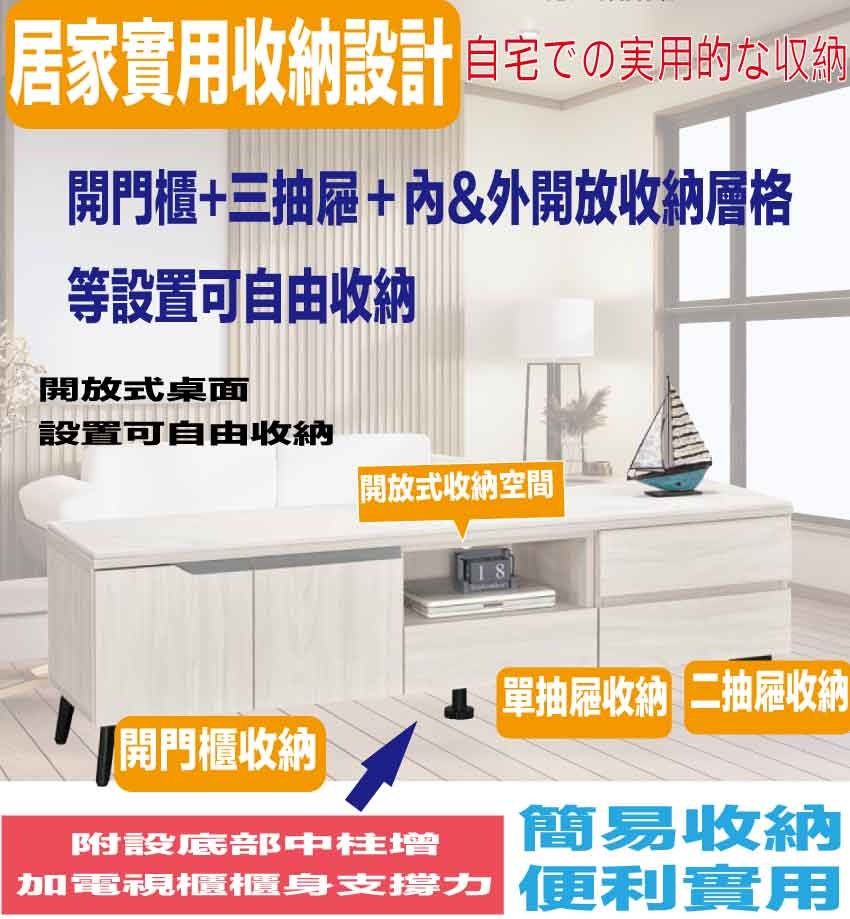 搭配採用開門櫃+三抽屜+開放層格等收納空間設計