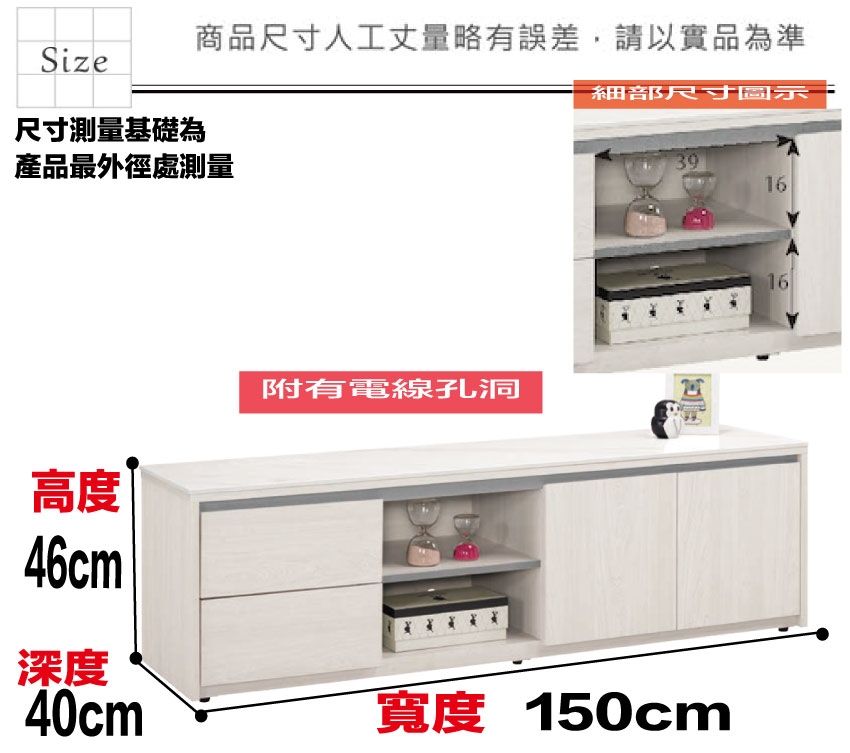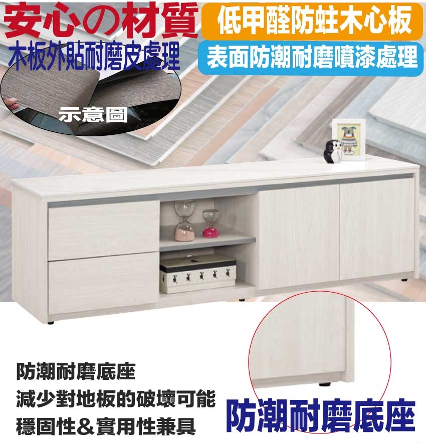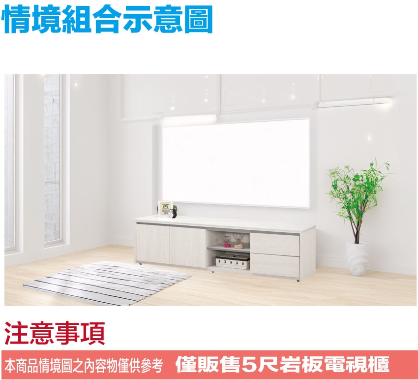 - ◆產品名稱:【綠家居】華爾雙色5尺岩板開門二抽電視櫃