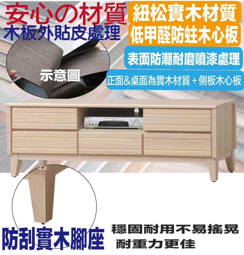 採用紐松木實木+防蛀木心板+防刮實木腳座+五金滑軌結構等安心材質製造