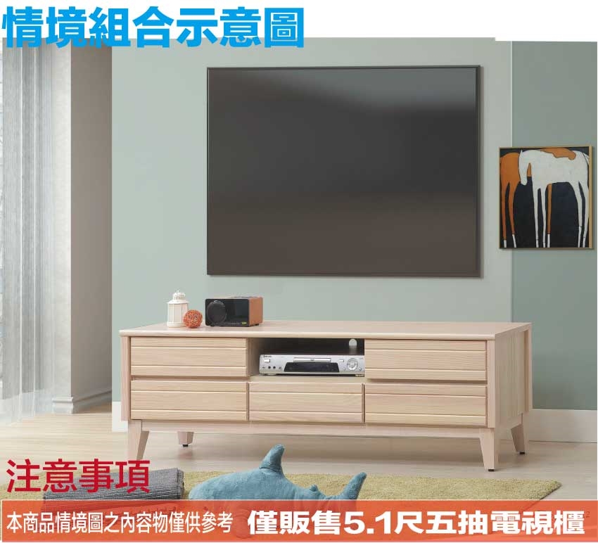 - ◆產品名稱:【綠家居】巴卡5.1尺實木五抽電視櫃