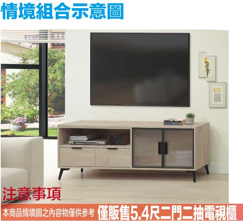 - ◆產品名稱:【綠家居】畢克爾5.4尺二門二抽鋁框電視櫃
