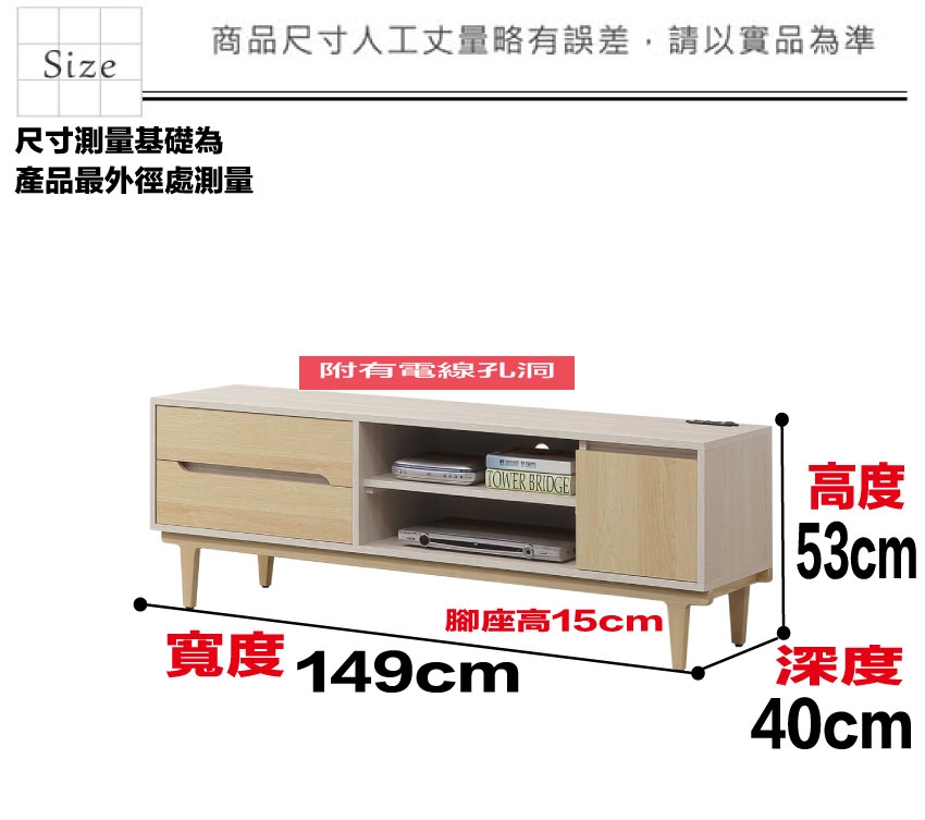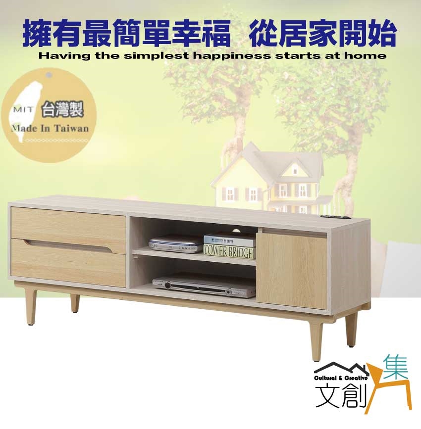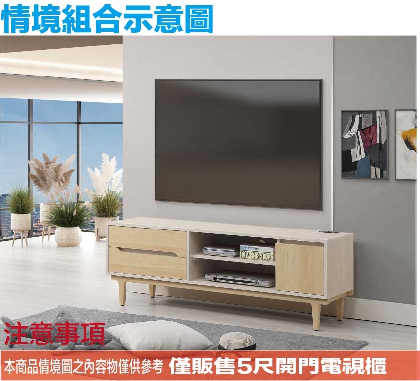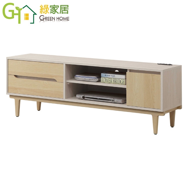 - ◆產品名稱:【綠家居】菲可雙色5尺開門二抽電視櫃(附插座單個)