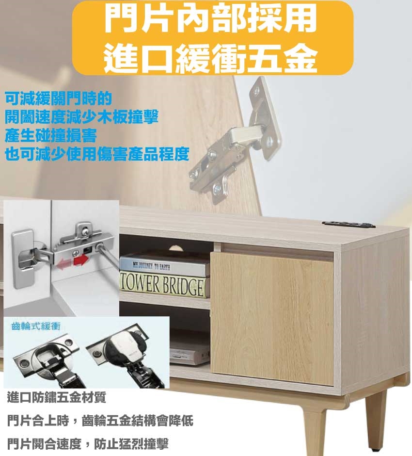 材質:防蛀木心板+防刮實木腳座+五金滑軌結構+防夾手緩衝五金