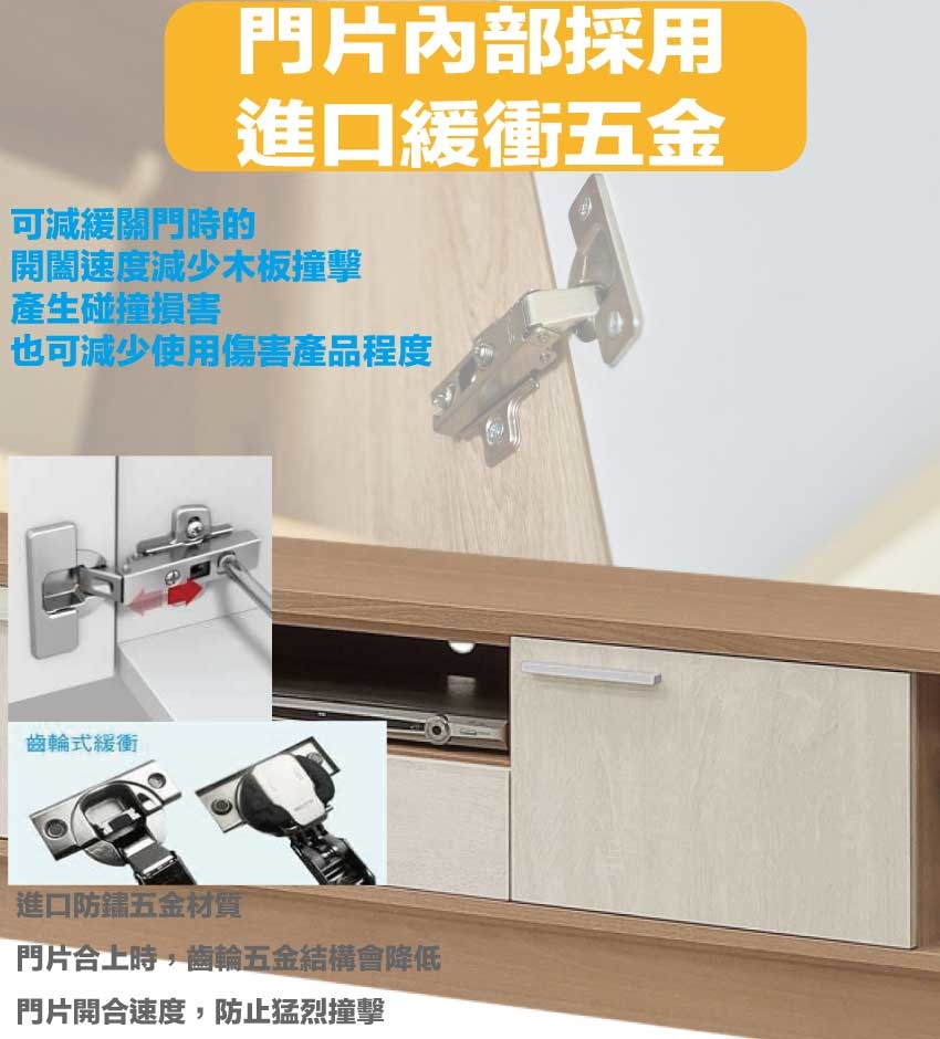 材質:防蛀木心板+防潮MDF板+防潮耐磨底座+五金滑軌結構+防夾手緩衝門片五金