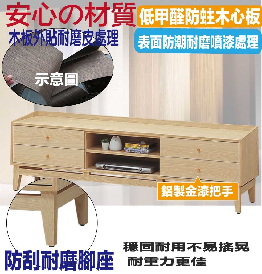 ★偏遠地區需額外加收運費,下標請先問與答詢問★ ★下訂前注意 由於商品流動較快,下訂前請先詢問是否有貨在下訂喔~★ 【綠家居】萬斯5.9尺四抽電視櫃 橡木紋色系+安心材質製造,使用放心+搭配居家更便利,採用防蛀木心板+防潮耐磨腳座+五金滑軌結構等安心材質製造 ,外層採用防潮耐磨噴漆處理搭配採用四抽屜+開放式層格等收納空間設計,全由專人配送到家,專業安心服務,替你省下更多時間!