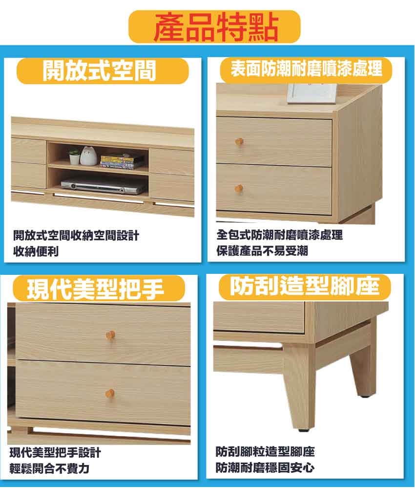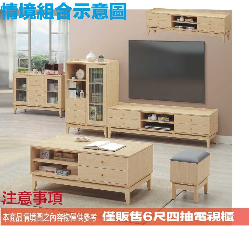 - ◆產品名稱:【綠家居】萬斯5.9尺四抽電視櫃