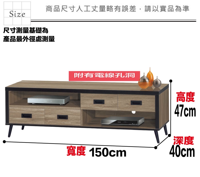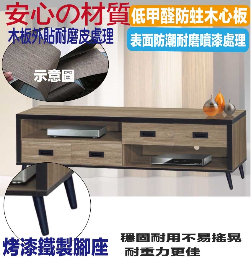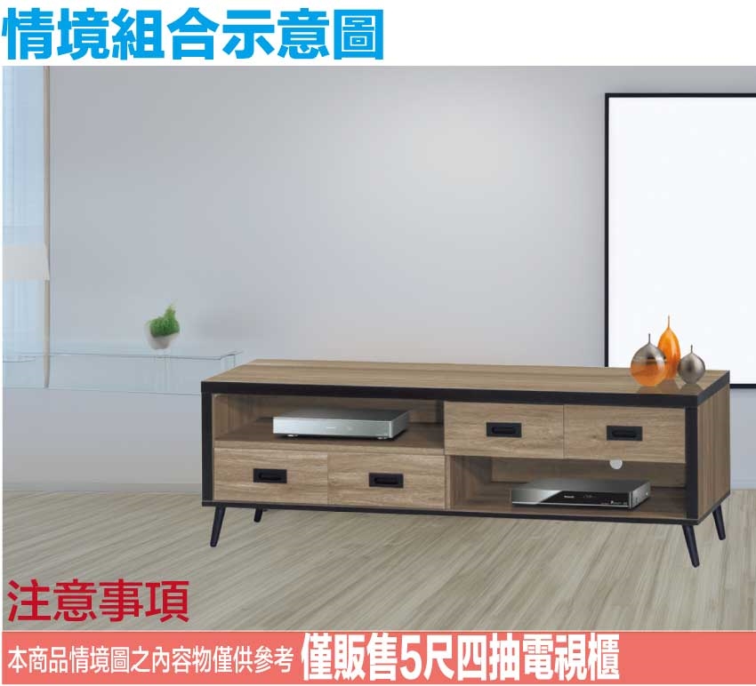 - ◆產品名稱:【綠家居】特斯灰橡5尺四抽電視櫃