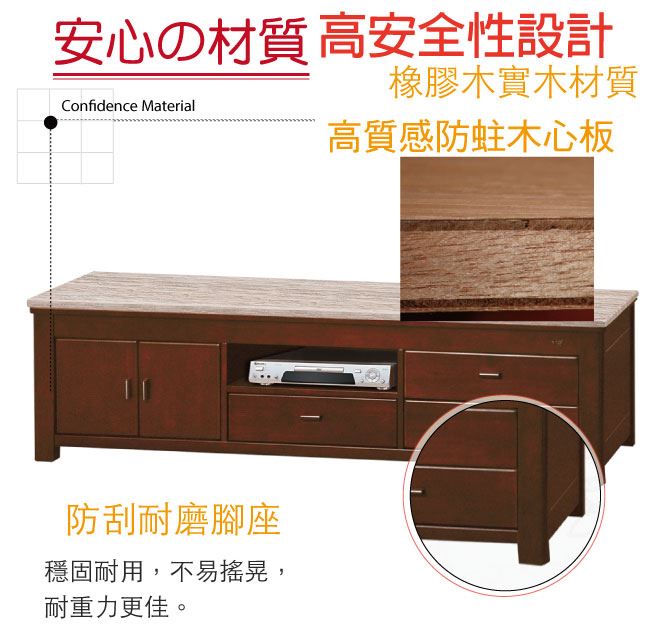 - 橡膠木實木+防蛀木心板