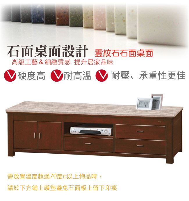 材質 | ◆產品名稱:【綠家居】亞美尼亞 實木6.9尺雲紋石面電視櫃/視聽櫃 電視櫃尺寸:(寬)208x(深)45x(高)58/公分 ◆材質: 材質:松木實木+2cm雲紋石面+防蛀木心板+五金滑軌結構 塗漆:優利坦三層全包式耐磨塗漆塗裝處理 |