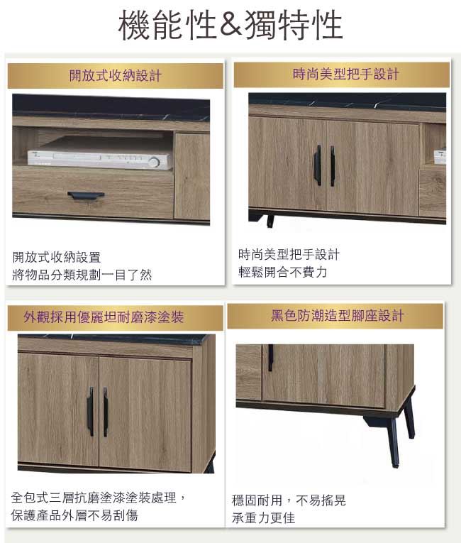 商品介紹 | 【綠家居】蒙特內哥羅 現代6尺雲紋石面電視櫃/視聽櫃 灰橡木紋色系+現代簡約風格+安心材質製造,整體採用2cm雲紋石面+黑鐵砂腳座+防蛀木心板+五金滑軌結構等安心材質製造,外層採用優利坦三層全包式耐磨塗漆塗裝處理搭配開門櫃+單抽屜+開放式層格等收納設計,全由專人配送到家,專業安心服務,替你省下更多時間! 【商品特色】 灰橡木紋色系+現代簡約風格+安心材質製造,使用放心+搭配居家更便利 採用2cm雲紋石面+黑鐵砂腳座+防蛀木心板+五金滑軌結構等安心材質製造 採用開門櫃+單抽屜+開放式層格等收納設計 此商品不需要DIY組立,此商品為組立後之成品 品質保證、專業設計、貼心服務 全由專人配送到家,專業安心服務,替您省下更多時間 |