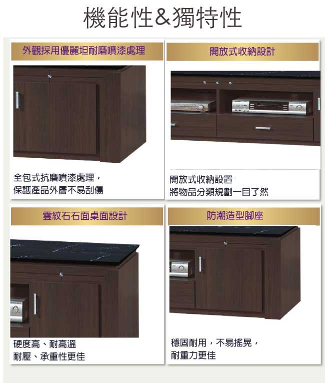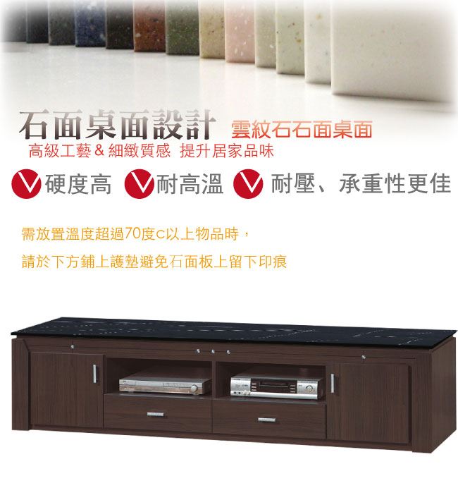 商品介紹 | 【綠家居】杜布爾 時尚6尺雲紋石面電視櫃/視聽櫃(三色石面可選) 胡桃色系三色石面可選+現代簡約風格+安心材質製造,整體採用防蛀木心板+防潮耐磨腳座+五金滑軌結構+12mm雲紋石面板等安心材質製造,產品外層採用防潮耐磨噴漆處理搭配採用開門櫃+二抽屜+開放式收納等收納空間設計,全由專人配送到家,專業安心服務,替你省下更多時間! 【商品特色】 胡桃色系三色石面可選+現代簡約風格+安心材質製造,使用放心+搭配居家更便利 採用防蛀木心板+防潮耐磨腳座+五金滑軌結構+12mm雲紋石面板等安心材質製造 產品外層採用防潮耐磨噴漆處理 搭配採用開門櫃+二抽屜+開放式收納等收納空間設計 此商品不需要DIY組立,此商品為組立後之成品 品質保證、專業設計、貼心服務 全由專人配送到家,專業安心服務,替您省下更多時間 |