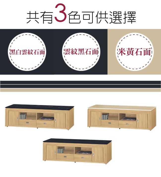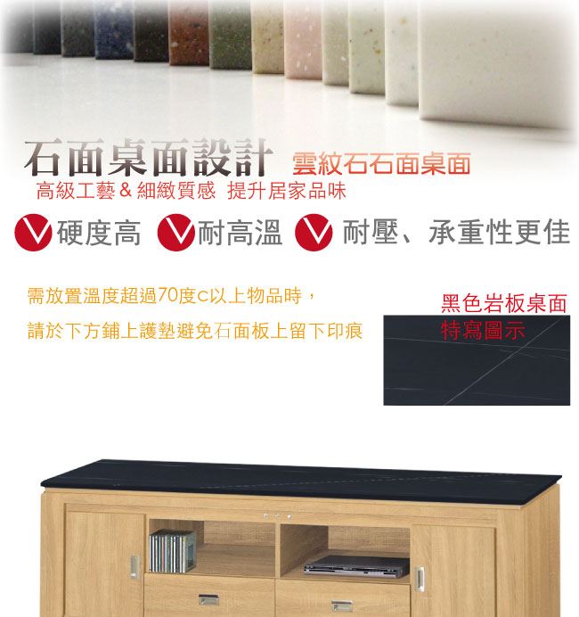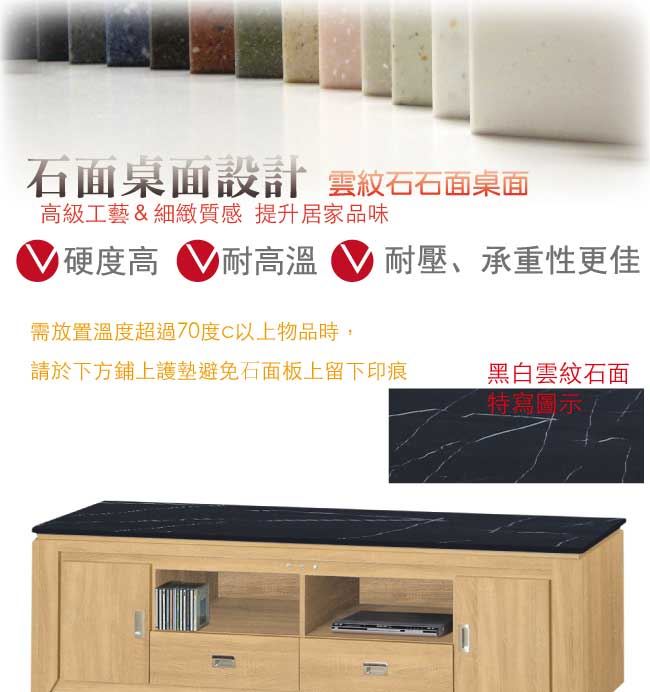 商品介紹 | 【綠家居】溫杜爾 時尚6尺雲紋石面&黑岩板電視櫃/視聽櫃(三色石面可選) 橡木紋色系三色石面可選+現代簡約風格+安心材質製造,整體採用防蛀木心板+防潮耐磨腳座+五金滑軌結構+12mm雲紋石面板等安心材質製造,產品外層採用防潮耐磨噴漆處理搭配採用開門櫃+二抽屜+開放式收納等收納空間設計,全由專人配送到家,專業安心服務,替你省下更多時間! 【商品特色】 橡木紋色系三色石面可選+現代簡約風格+安心材質製造,使用放心+搭配居家更便利 採用防蛀木心板+防潮耐磨腳座+五金滑軌結構+12mm雲紋石面板等安心材質製造 產品外層採用防潮耐磨噴漆處理 搭配採用開門櫃+二抽屜+開放式收納等收納空間設計 此商品不需要DIY組立,此商品為組立後之成品 品質保證、專業設計、貼心服務 全由專人配送到家,專業安心服務,替您省下更多時間 |