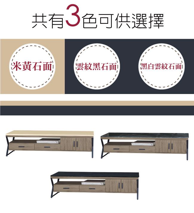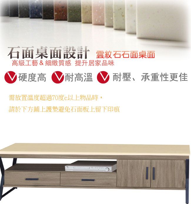 商品介紹 | 【綠家居】梅尼 二門6尺石面&岩板二抽電視櫃(三色石面可選) 橡木紋色系+三色石面可選+現代簡約風格+安心材質製造,整體採用防蛀木心板+黑鐵砂框架&腳座+五金滑軌結構+12mm雲紋石&岩板面板等安心材質製造,產品外層採用防潮耐磨噴漆處理搭配採用開門櫃+二抽屜+開放式層格收納等收納空間設計,全由專人配送到家,專業安心服務,替你省下更多時間! 【商品特色】 橡木紋色系+三色石面可選+現代簡約風格+安心材質製造,使用放心+搭配居家更便利 採用防蛀木心板+黑鐵砂框架&腳座+五金滑軌結構+12mm雲紋石&岩板面板等安心材質製造 產品外層採用防潮耐磨噴漆處理 搭配採用開門櫃+二抽屜+開放式層格收納等收納空間設計 此商品不需要DIY組立,此商品為組立後之成品 品質保證、專業設計、貼心服務 全由專人配送到家,專業安心服務,替您省下更多時間 |