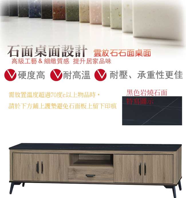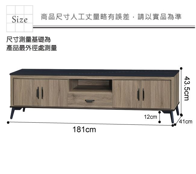 材質 | ◆產品名稱: 【綠家居】凱梅 四門6尺石面&岩板單抽電視櫃(三色石面可選) 尺寸:(寬)181x(深)41x(高)43.5/公分 ◆材質: 材質:防蛀木心板+黑鐵砂框架&腳座+五金滑軌結構+12mm雲紋石&岩板面板 噴漆:防潮耐磨噴漆處理