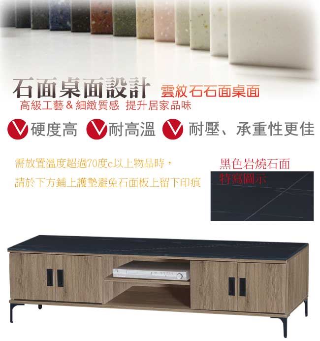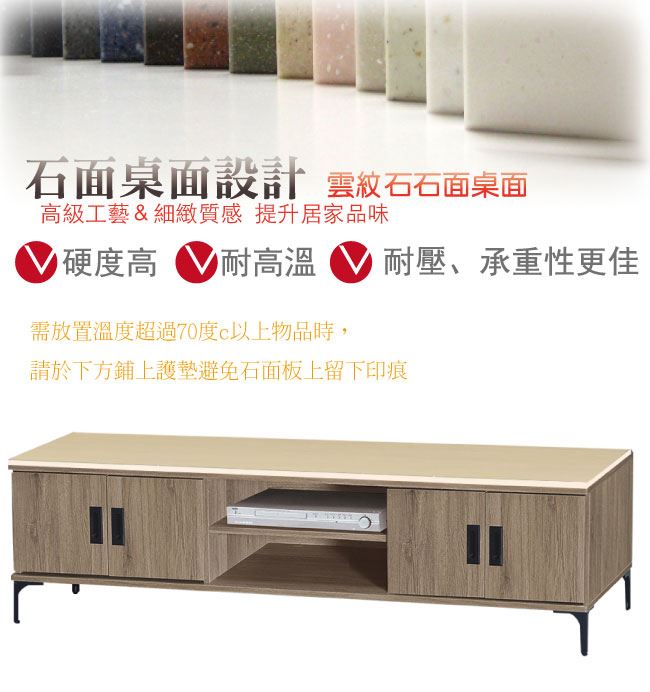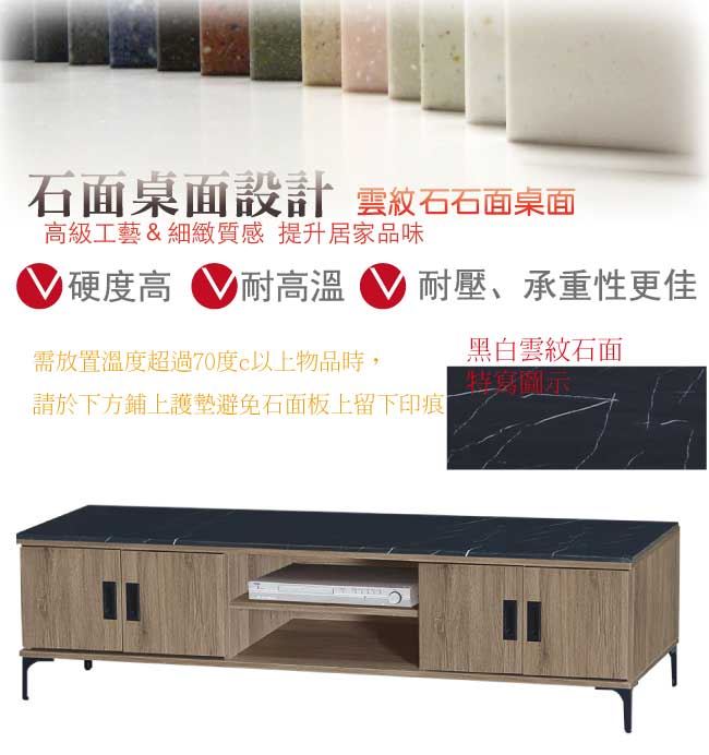 商品介紹 | 【綠家居】艾凱 四門6尺石面&岩板電視櫃(三色石面可選) 灰橡木紋色系+三色石面可選+現代簡約風格+安心材質製造,整體採用防蛀木心板+黑鐵砂框架&腳座+12mm雲紋石&岩板面板等安心材質製造,產品外層採用防潮耐磨噴漆處理搭配採用開門櫃+開放式層格收納等收納空間設計,全由專人配送到家,專業安心服務,替你省下更多時間! 【商品特色】 灰橡木紋色系+三色石面可選+現代簡約風格+安心材質製造,使用放心+搭配居家更便利 採用防蛀木心板+黑鐵砂框架&腳座+12mm雲紋石&岩板面板等安心材質製造 產品外層採用防潮耐磨噴漆處理 搭配採用開門櫃+開放式層格收納等收納空間設計 此商品不需要DIY組立,此商品為組立後之成品 品質保證、專業設計、貼心服務 全由專人配送到家,專業安心服務,替您省下更多時間 |