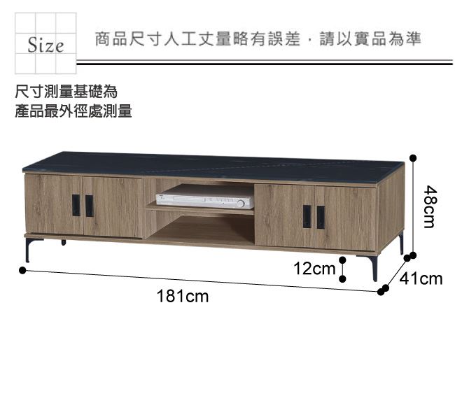 材質 | ◆產品名稱: 【綠家居】艾凱 四門6尺石面&岩板電視櫃(三色石面可選) 尺寸:(寬)181x(深)41x(高)48/公分 ◆材質: 材質:防蛀木心板+黑鐵砂框架&腳座+12mm雲紋石&岩板面板 噴漆:防潮耐磨噴漆處理