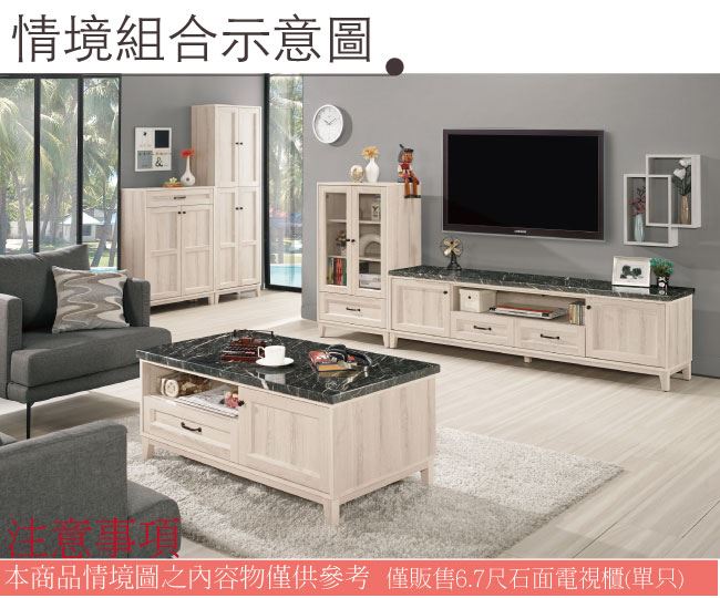 【綠家居】馬拉提 淺橡6.7尺雲紋石面電視櫃/視聽櫃