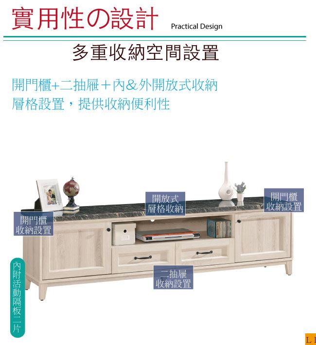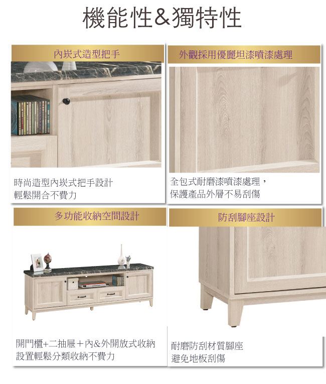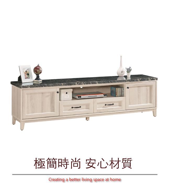 商品介紹 | 【綠家居】馬拉提 淺橡6.7尺雲紋石面電視櫃/視聽櫃 淺橡木紋色系+現代簡約風格+安心材質製造,整體採用防蛀木心板+五金滑軌結構+耐磨防刮腳座+2cm雲紋石面桌面板+防夾手緩衝門片五金等安心材質製造,外層採用優利坦全包式耐磨噴漆處理搭配開門櫃+二抽屜+內&外開放式收納等收納設計,全由專人配送到家,專業安心服務,替你省下更多時間! 【商品特色】 淺橡木紋色系+現代簡約風格+安心材質製造,使用放心+搭配居家更便利 採用防蛀木心板+五金滑軌結構+耐磨防刮腳座+2cm雲紋石面桌面板+防夾手緩衝門片五金等安心材質製造 開門櫃+二抽屜+內&外開放式收納等收納設計 此商品不需要DIY組立,此商品為組立後之成品 品質保證、專業設計、貼心服務 全由專人配送到家,專業安心服務,替您省下更多時間 |