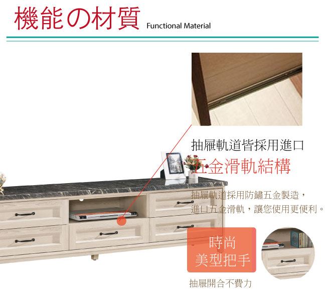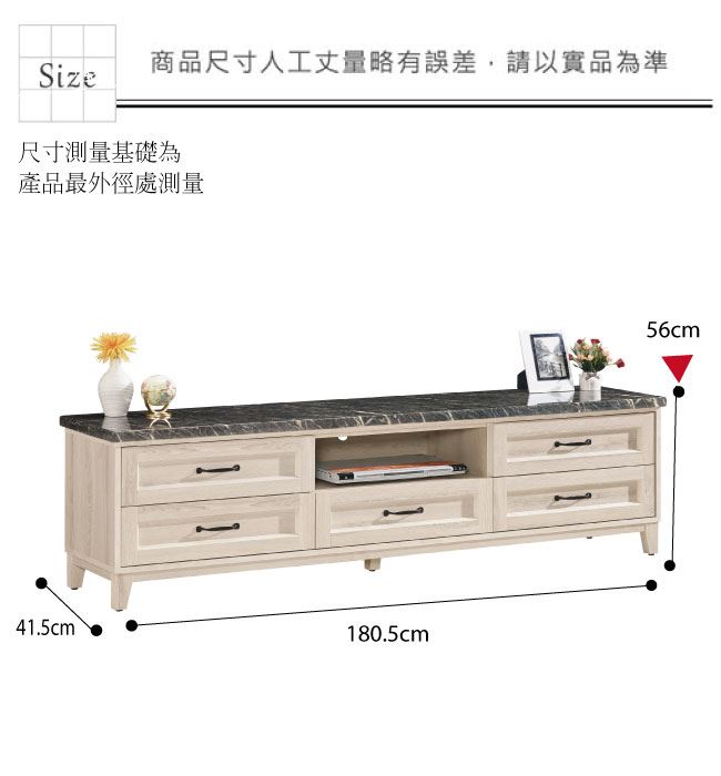 材質 | ◆產品名稱: 【綠家居】馬拉提 淺橡6尺雲紋石面電視櫃/視聽櫃 產品尺寸: 尺寸:(寬)180.5x(深)41.5x(高)56公分 ◆材質: 材質:防蛀木心板+耐磨防刮腳座+2cm雲紋石面桌面板 材質:五金滑軌結構 塗漆:優利坦全包式耐磨噴漆處理
