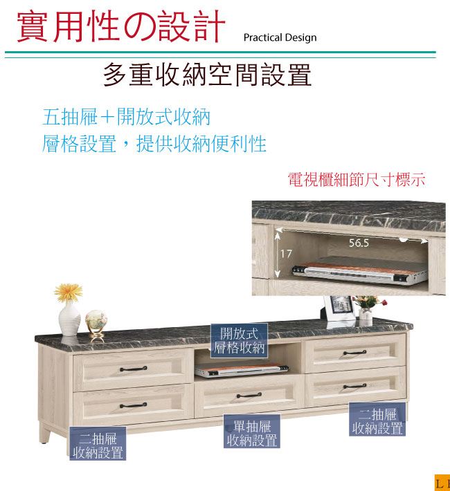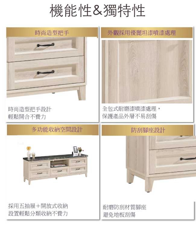 商品介紹 | 【綠家居】馬拉提 淺橡6尺雲紋石面電視櫃/視聽櫃 淺橡木紋色系+現代簡約風格+安心材質製造,整體採用防蛀木心板+五金滑軌結構+耐磨防刮腳座+2cm雲紋石面桌面板等安心材質製造,外層採用優利坦全包式耐磨噴漆處理搭配五抽屜+內&外開放式收納等收納設計,全由專人配送到家,專業安心服務,替你省下更多時間! 【商品特色】 淺橡木紋色系+現代簡約風格+安心材質製造,使用放心+搭配居家更便利 採用防蛀木心板+五金滑軌結構+耐磨防刮腳座+2cm雲紋石面桌面板等安心材質製造 五抽屜+內&外開放式收納等收納設計 此商品不需要DIY組立,此商品為組立後之成品 品質保證、專業設計、貼心服務 全由專人配送到家,專業安心服務,替您省下更多時間 |