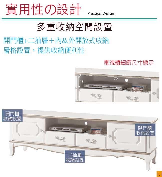 【綠家居】皮伊蒂 法式白6.1尺二門二抽實木電視櫃/視聽櫃