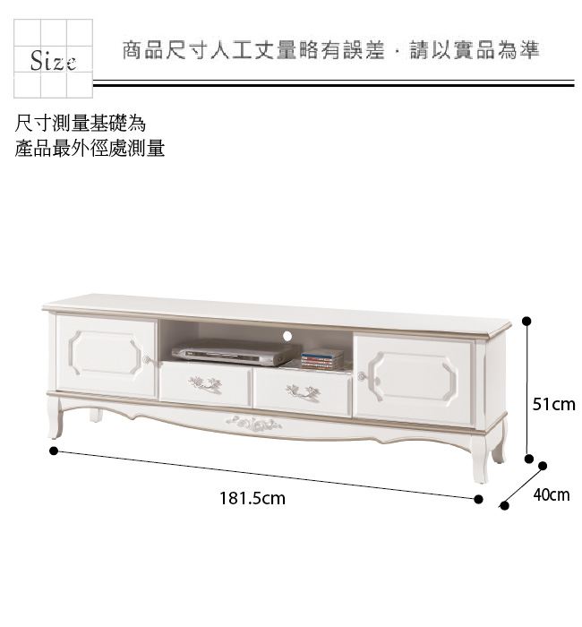 材質 | ◆產品名稱: 【綠家居】皮伊蒂 法式白6.1尺二門二抽實木電視櫃/視聽櫃 產品尺寸: 尺寸:(寬)181.5x(深)40x(高)51公分 ◆材質: 材質:松木實木+防潮MDF板材+防潮實木腳座 材質:五金滑軌結構 塗漆:優利坦全包式亮面噴漆處理