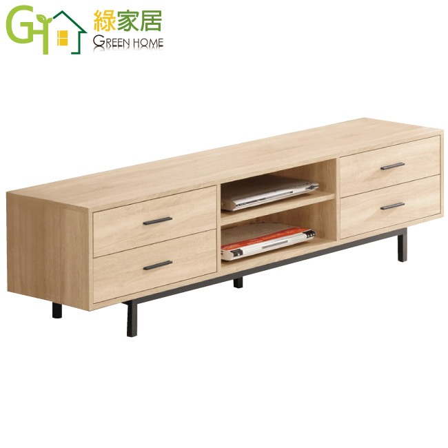 【綠家居】米許 時尚6尺原木紋電視櫃/視聽櫃 電視櫃使用防蛀木心板+黑鐵砂金屬腳座+優麗坦抗磨三層全包式塗漆塗裝+五金造型把手+鋼珠滑軌等安心材質,清潔保養容易。讓電視櫃整體外觀光滑有緻,四抽屜+開放式層格等收納空間設計讓您分層分類輕鬆容易 【綠家居】米許 時尚6尺原木紋電視櫃/視聽櫃 設計簡單大方!現在購買享專人送到府服務,免組裝的服務喔!!