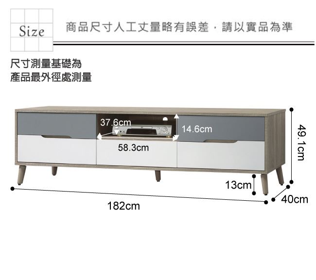 材質 | ◆產品名稱: 【綠家居】湯可利 時尚6.1尺五抽電視櫃(二色可選) 灰橡尺寸:(寬)182x(深)40x(高)49.1/公分 橡木尺寸:(寬)182x(深)40x(高)47.6/公分 ◆材質: 材質:防蛀木心板+防潮木質腳座+五金滑軌結構 噴漆:防潮耐磨&亮面噴漆處理