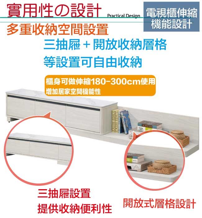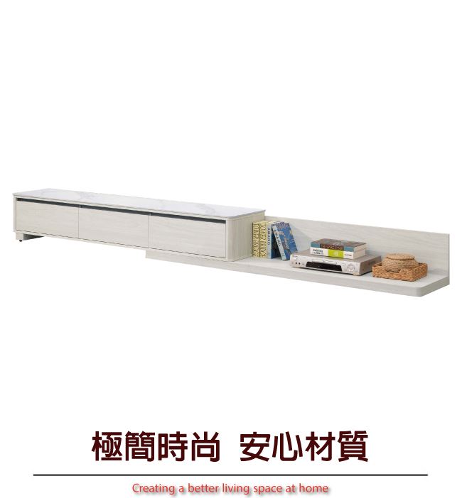 商 品 介 紹 | 【綠家居】魁北克6尺岩板伸縮電視櫃/視聽櫃 淺橡木紋色系+現代簡約風格+安心材質製造,整體採用防蛀木心板+防潮耐磨腳座+五金滑軌結構+12mm高硬度岩板等安心材質製造,產品外層採用防潮耐磨噴漆處理搭配採用三抽屜+開放式收納等收納空間設計,全由專人配送到家,專業安心服務,替你省下更多時間! 【商品特色】 淺橡木紋色系+現代簡約風格+安心材質製造,使用放心+搭配居家更便利 電視櫃櫃身可調整180-300cm伸縮使用,增加居家收納擺設便利性 採用防蛀木心板+防潮耐磨腳座+五金滑軌結構+12mm高硬度岩板等安心材質製造 產品外層採用防潮耐磨噴漆處理 搭配採用三抽屜+開放式收納等收納空間設計 此商品不需要DIY組立,此商品為組立後之成品 品質保證、專業設計、貼心服務 全由專人配送到家,專業安心服務,替您省下更多時間
