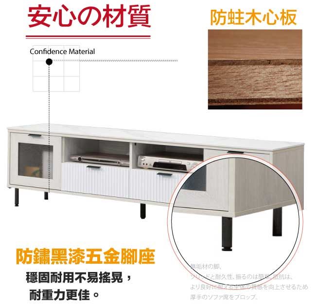 材質 | ◆產品名稱:【綠家居】剛果雙色6尺岩板四抽電視櫃/視聽櫃 尺寸:(寬)180x(深)40(高)50公分 ◆材質: 材質:防蛀木心板+防鏽黑漆五金腳座(12cm高)+五金滑軌結構+6mm高硬度岩板 噴漆:防潮亮面&耐磨噴漆處理