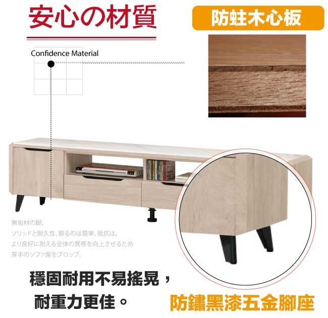 商 品 介 紹 | 【綠家居】麥格妮岩板6.7尺二門二抽電視櫃/視聽櫃 淺橡木紋色系+現代簡約風格+安心材質製造,使用放心+搭配居家更便利,整體採用防蛀木心板+防鏽黑漆五金腳座+五金滑軌結構+12mm高硬度岩板桌面板等材質搭配外層採用優莉坦耐磨全包式噴漆處理 ,採用開門櫃+二抽屜+開放式收納等收納空間設計,全由專人配送到家,專業安心服務,替你省下更多時間! 【商品特色】 淺橡木紋色系+現代簡約風格+安心材質製造,使用放心+搭配居家更便利 防蛀木心板+防鏽黑漆五金腳座+五金滑軌結構+12mm高硬度岩板桌面板等材質 採用開門櫃+二抽屜+開放式收納等收納空間設計 此商品不需要DIY組立,此商品為組立後之成品 品質保證、專業設計、貼心服務 全由專人配送到家,專業安心服務,替您省下更多時間