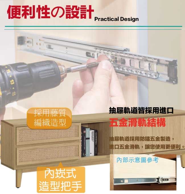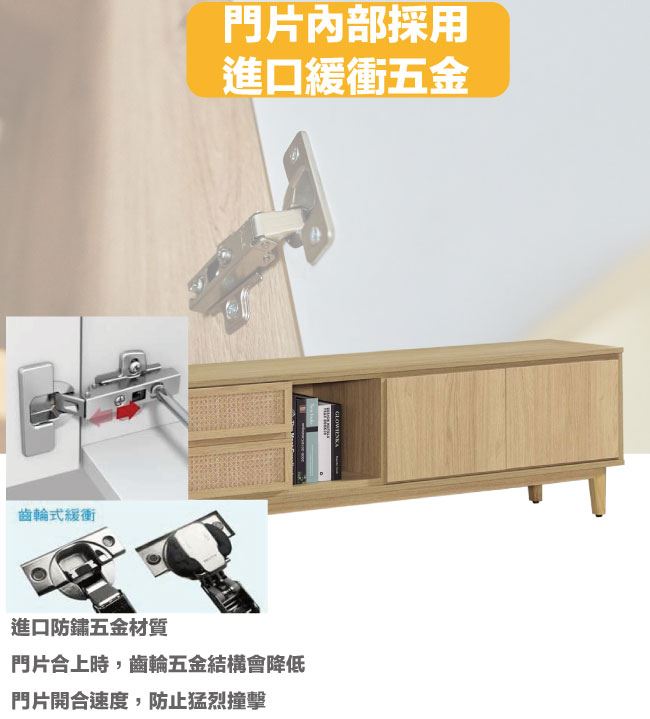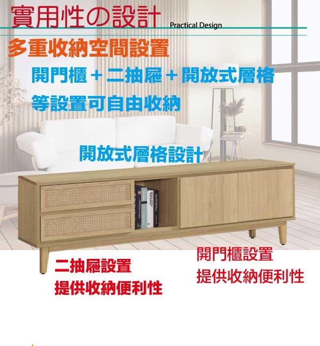 商 品 介 紹 | 【綠家居】神奈川編織紋6尺二門二抽電視櫃/視聽櫃 木紋雙色系+現代簡約風格+安心材質製造,使用放心+搭配居家更便利,整體採用防蛀木心板+防潮耐磨腳座+防夾手緩衝門片五金+五金滑軌結構+藤質編織網格等材質搭配外層採用優莉坦耐磨全包式噴漆處理 ,採用二門櫃+二抽屜+開放式收納等收納空間設計,全由專人配送到家,專業安心服務,替你省下更多時間! 【商品特色】 木紋雙色系+現代簡約風格+安心材質製造,使用放心+搭配居家更便利 防蛀木心板+防潮耐磨腳座+五金滑軌結構+防夾手緩衝門片五金+藤質編織網格等材質 採用二門櫃+二抽屜+開放式收納等收納空間設計 此商品不需要DIY組立,此商品為組立後之成品 品質保證、專業設計、貼心服務 全由專人配送到家,專業安心服務,替您省下更多時間