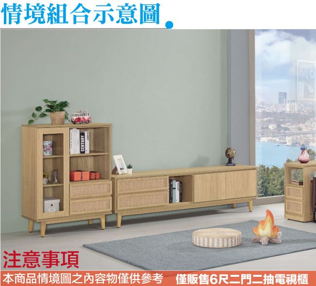【綠家居】神奈川編織紋6尺二門二抽電視櫃/視聽櫃