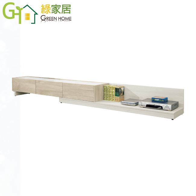 商 品 介 紹 | 【綠家居】羅娜雙色6.1尺可伸縮三抽電視櫃/視聽櫃 木紋雙色系+現代簡約風格+安心材質製造,整體採用防蛀木心板+防潮耐磨腳座+五金滑軌結構等安心材質製造,產品外層採用防潮耐磨噴漆處理搭配採用三抽屜+開放式收納+櫃身可伸縮拉合使用等收納空間設計,全由專人配送到家,專業安心服務,替你省下更多時間! 【商品特色】 木紋雙色系+現代簡約風格+安心材質製造,使用放心+搭配居家更便利 採用防蛀木心板+防潮耐磨腳座+五金滑軌結構等安心材質製造 電視櫃櫃身可調整伸縮寬度(伸縮尺寸182-300cm)增加居家機能性與實用性 產品外層採用防潮耐磨噴漆處理 搭配採用三抽屜+開放式收納+櫃身可伸縮拉合使用等收納空間設計 此商品不需要DIY組立,此商品為組立後之成品 品質保證、專業設計、貼心服務 全由專人配送到家,專業安心服務,替您省下更多時間