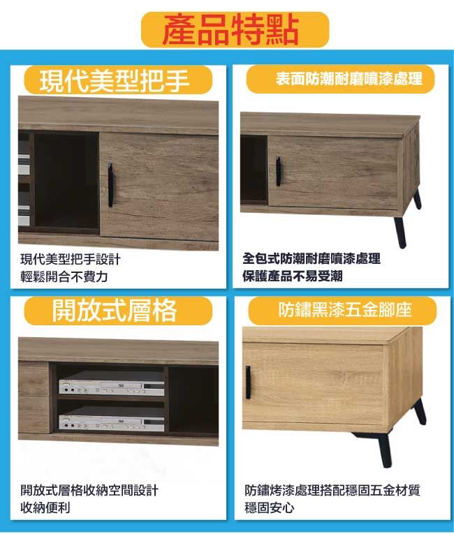 商 品 介 紹 | 【綠家居】羅依6尺單門二抽電視櫃/視聽櫃(二色可選) 二色可選+現代簡約風格+安心材質製造,整體採用防蛀木心板+防鏽黑漆五金腳座+五金滑軌結構等安心材質製造,產品外層採用防潮耐磨噴漆處理搭配採用開門櫃+二抽屜+開放式收納等收納空間設計,全由專人配送到家,專業安心服務,替你省下更多時間! 【商品特色】 二色可選+現代簡約風格+安心材質製造,使用放心+搭配居家更便利 採用防蛀木心板+防鏽黑漆五金腳座+五金滑軌結構等安心材質製造 產品外層採用防潮耐磨噴漆處理 搭配採用開門櫃+二抽屜+開放式收納等收納空間設計 此商品不需要DIY組立,此商品為組立後之成品 品質保證、專業設計、貼心服務 全由專人配送到家,專業安心服務,替您省下更多時間