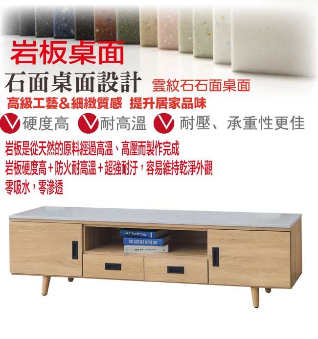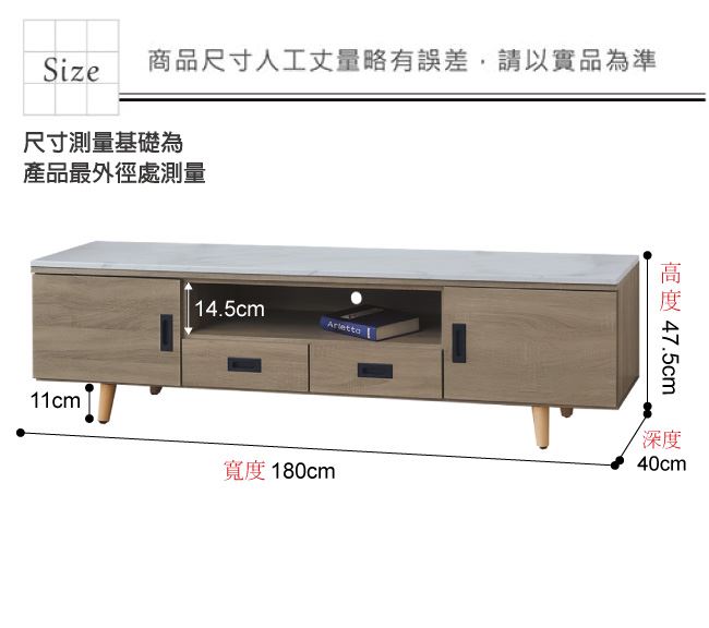 材質 | ◆產品名稱:【綠家居】羅平6尺二門二抽電視櫃/視聽櫃(二色可選) 尺寸:(寬)180x(深)40(高)47公分 ◆材質: 材質:防蛀木心板+防潮耐磨腳座+五金滑軌結構+6mm仿雲紋石面木質面板 噴漆:防潮耐磨噴漆處理