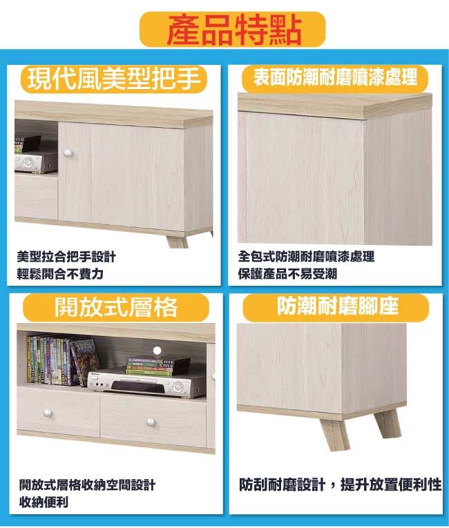 商 品 介 紹 | 【綠家居】葛特雙色6尺二門二抽電視櫃 淺橡木紋雙色系+現代簡約風格+安心材質製造,使用放心+搭配居家更便利,整體採用防蛀木心板+防潮木質腳座+五金滑軌結構+防夾手緩衝門片五金等材質搭配外層採用優莉坦耐磨全包式噴漆處理 ,採用開門櫃+二抽屜+開放層格等收納空間設計,全由專人配送到家,專業安心服務,替你省下更多時間! 【商品特色】 淺橡木紋雙色系+現代簡約風格+安心材質製造,使用放心+搭配居家更便利 防蛀木心板+防潮木質腳座+五金滑軌結構+防夾手緩衝門片五金等材質 採用開門櫃+二抽屜+開放層格等收納空間設計 此商品不需要DIY組立,此商品為組立後之成品 品質保證、專業設計、貼心服務 全由專人配送到家,專業安心服務,替您省下更多時間