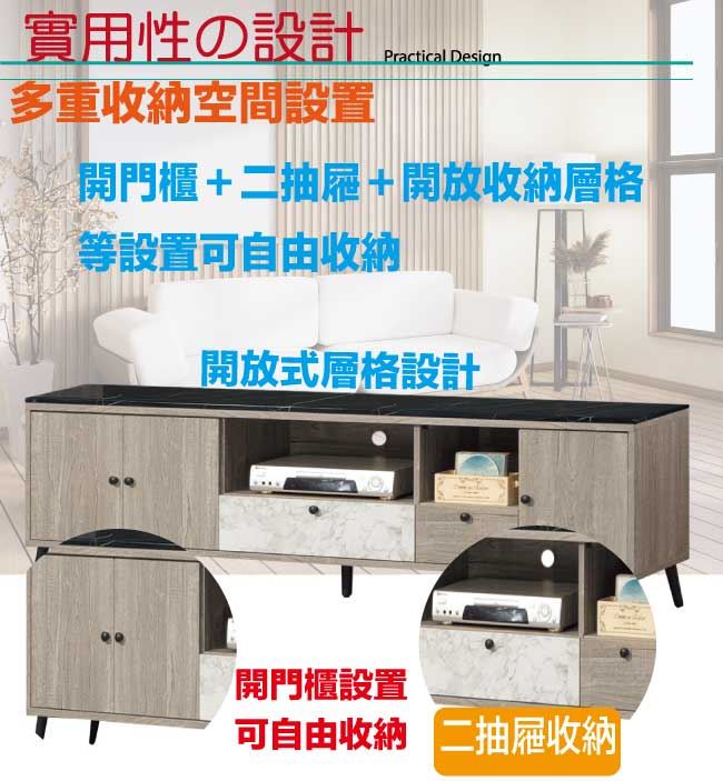 【綠家居】鋼克6.1尺雲紋石面電視櫃/視聽櫃